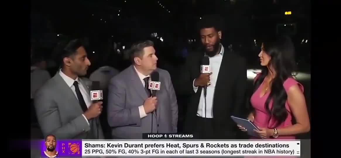 憋不住就爆吧!聽到“馬刺KD”時 Shams露出詭異一笑